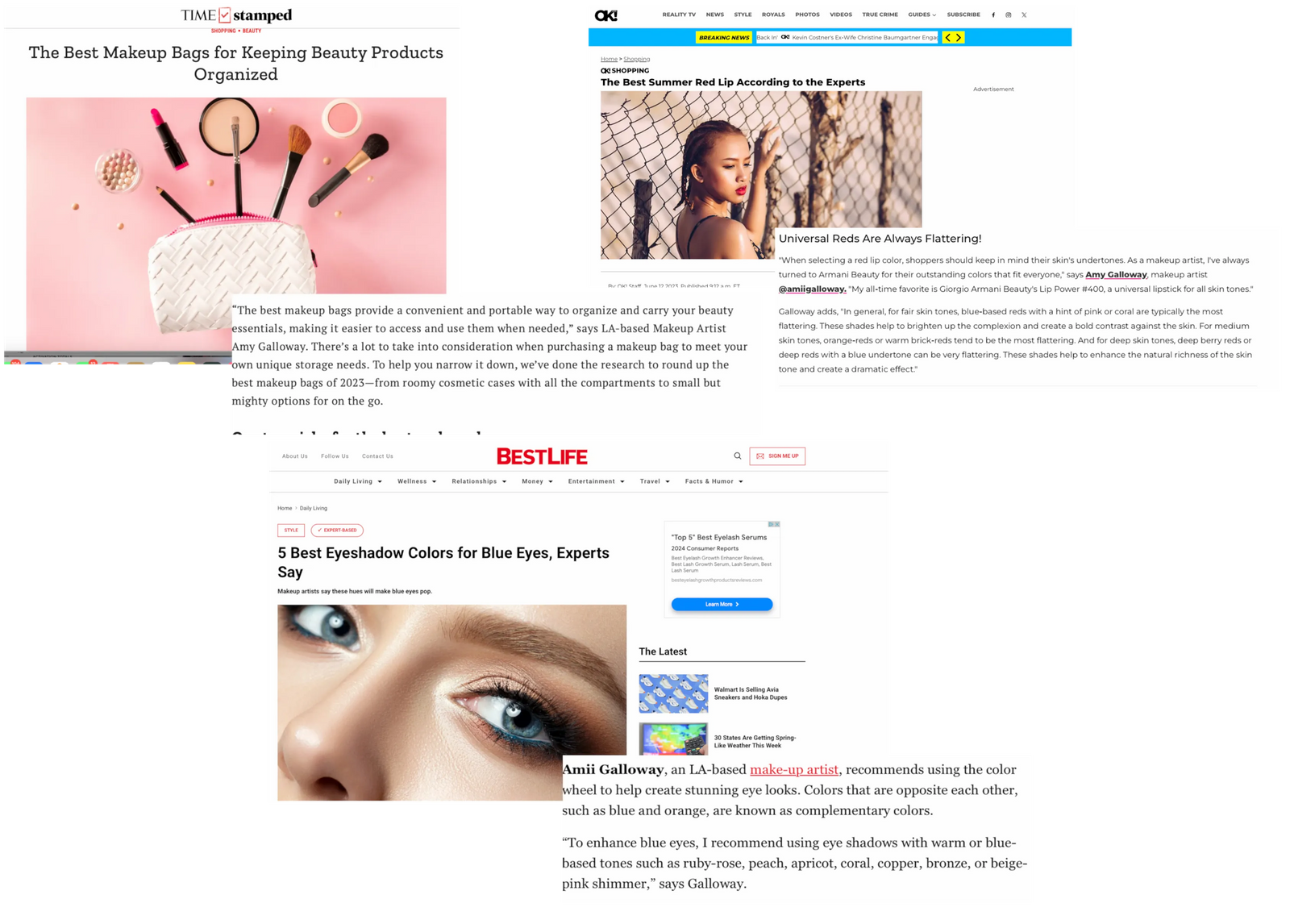 Through tailored press releases, media outreach, and relationship-building with key journalists and editors, I was able to strengthen the artist’s reputation as an industry expert, amplifying her visibility across major publications and online platforms such as OK! Magazine, Best Life and Time Shopping.